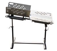 Для перемещения стола внутри операционной предусмотрены роликовые опоры, а для его фиксации в рабочем положении (даже на неровной поверхности), имеются винтовые упоры.